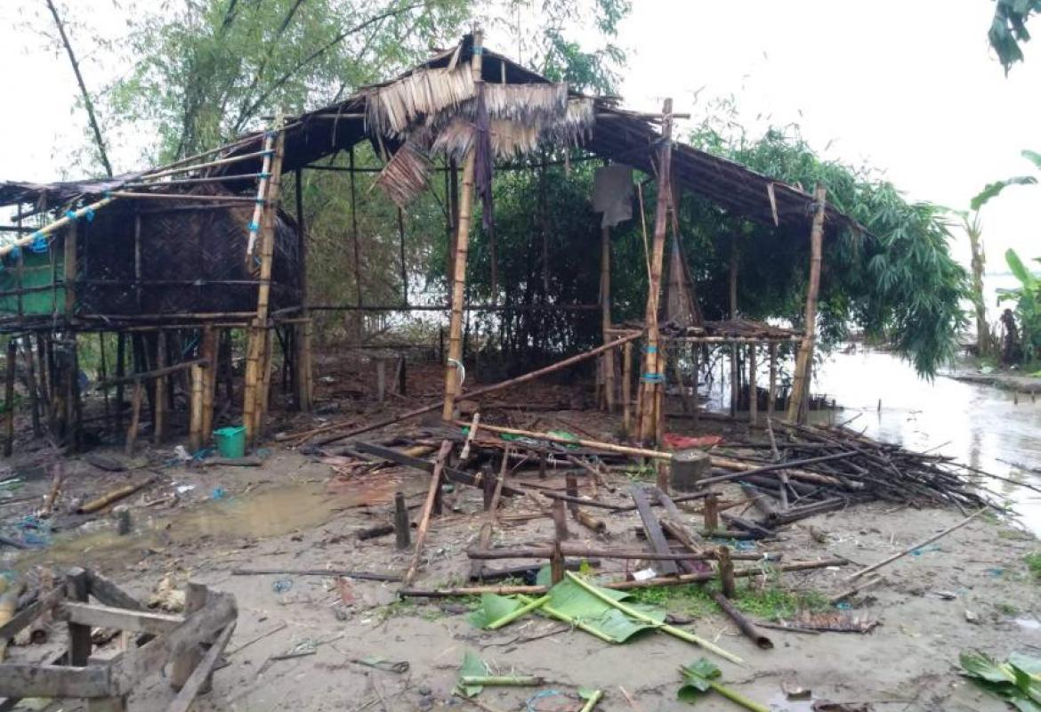 ကော့သောင်းမြို့တွင် မိုးသည်းထန်စွာရွာသွန်းပြီး လေပြင်းတိုက်ခတ်မှုကြောင့် လူနေအိမ်ဆောက်အဦး အချို့ ပျက်စီး