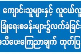 CDM ဝန်ထမ်းများ၊ ကျောင်းသား၊ ကျောင်းသူများနှင့် လူငယ်၊ လူရွယ်များအား ကြိုဆိုရေးစခန်းများ ဖွင့်လှစ်လက်ခံခြင်းနှင့် နီးစပ်ရာလုံခြုံရေးစခန်းများ၌ လက်ခံခြင်းဆောင်ရွက်သွားမည်ဖြစ်ကြောင်း အသိပေးကြေညာချက်ထုတ်ပြန်