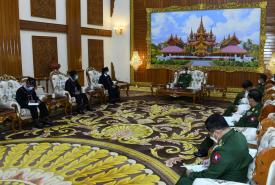 နိုင်ငံတော်စီမံအုပ်ချုပ်ရေးကောင်စီဥက္ကဋ္ဌ တပ်မတော်ကာကွယ်ရေးဦးစီးချုပ် ဗိုလ်ချုပ်မှူးကြီး မင်းအောင်လှိုင် လားဟူဒီမိုကရက်တစ်အစည်းအရုံး(LDU)မှအထွေထွေအတွင်းရေးမှူး ကျာဆော်လမွန် ဦးဆောင်သည့် ငြိမ်းချမ်းရေးကိုယ်စားလှယ်အဖွဲ့နှင့် တွေ့ဆု