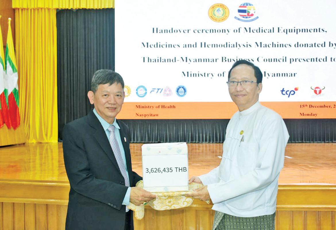 ထိုင်း-မြန်မာစီးပွားရေးလုပ်ငန်းကောင်စီမှ လှူဒါန်းသော ဆေးနှင့်ဆေးပစ္စည်းများ လွှဲပြောင်းလက်ခံပွဲ ကျင်းပ