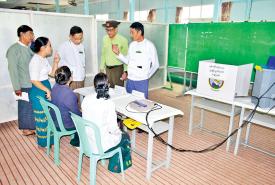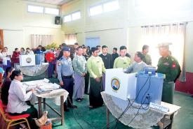 ချမ်းအေးသာစံမြို့နယ်၌ မဲရုံပြင်ဆင်ထားရှိမှုနှင့် မဲပေးသရုပ်ပြပွဲအခမ်းအနား ကျင်းပ