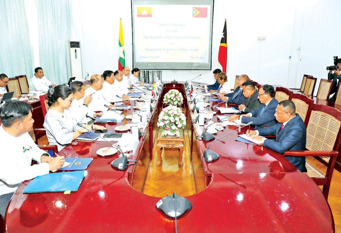 ပြည်ထောင်စုဝန်ကြီး ဦးသန်းဆွေနှင့် တီမောလက်စ်တေ နိုင်ငံခြားရေးနှင့် ပူးပေါင်းဆောင်ရွက်ရေးဝန်ကြီးတို့ ဦးဆောင်သော နှစ်ဖက်ကိုယ်စားလှယ်အဖွဲ့ တွေ့ဆုံ