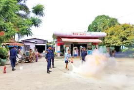 ဓနုဖြူမြို့နယ်၌ စက်သုံးဆီအရောင်းဆိုင်များ မီးဘေးအန္တရာယ် ကြိုတင်ကာကွယ်ရေး ဇာတ်တိုက်လေ့ကျင့်