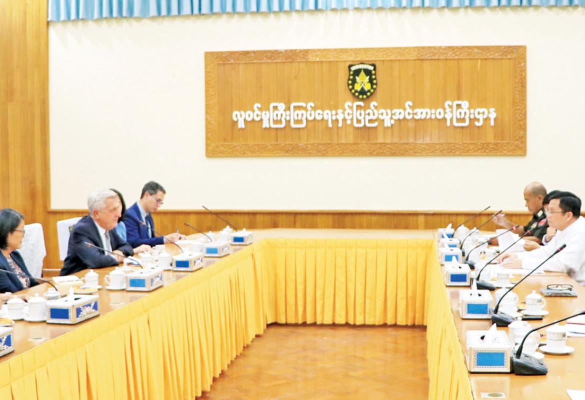 ပြည်ထောင်စုဝန်ကြီး ဦးမြင့်ကြိုင် ဆွစ်ဇာလန်နိုင်ငံ ဂျီနီဗာမြို့ရှိ ကုလသမဂ္ဂဒုက္ခသည်များဆိုင်ရာ မဟာမင်းကြီးနှင့်အဖွဲ့အား လက်ခံတွေ့ဆုံ