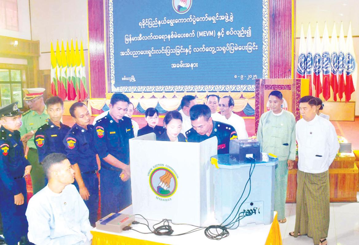 စစ်တွေ၊ ကျောက်ဖြူနှင့် မာန်အောင်မြို့တို့၌ မြန်မာအီလက်ထရောနစ်မဲပေးစက်နှင့်စပ်လျဉ်း၍ လက်တွေ့သရုပ်ပြ