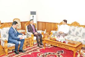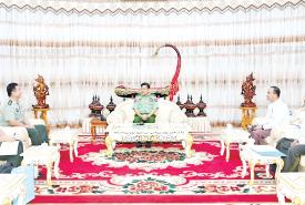 ပြည်ထောင်စုဝန်ကြီး ဦးသန်းဆွေ မြန်မာနိုင်ငံဆိုင်ရာ ထိုင်းသံအမတ်ကြီး မစ္စတာ မုံခွန်းဝိစစ်စတန် အား လက်ခံတွေ့ဆုံ