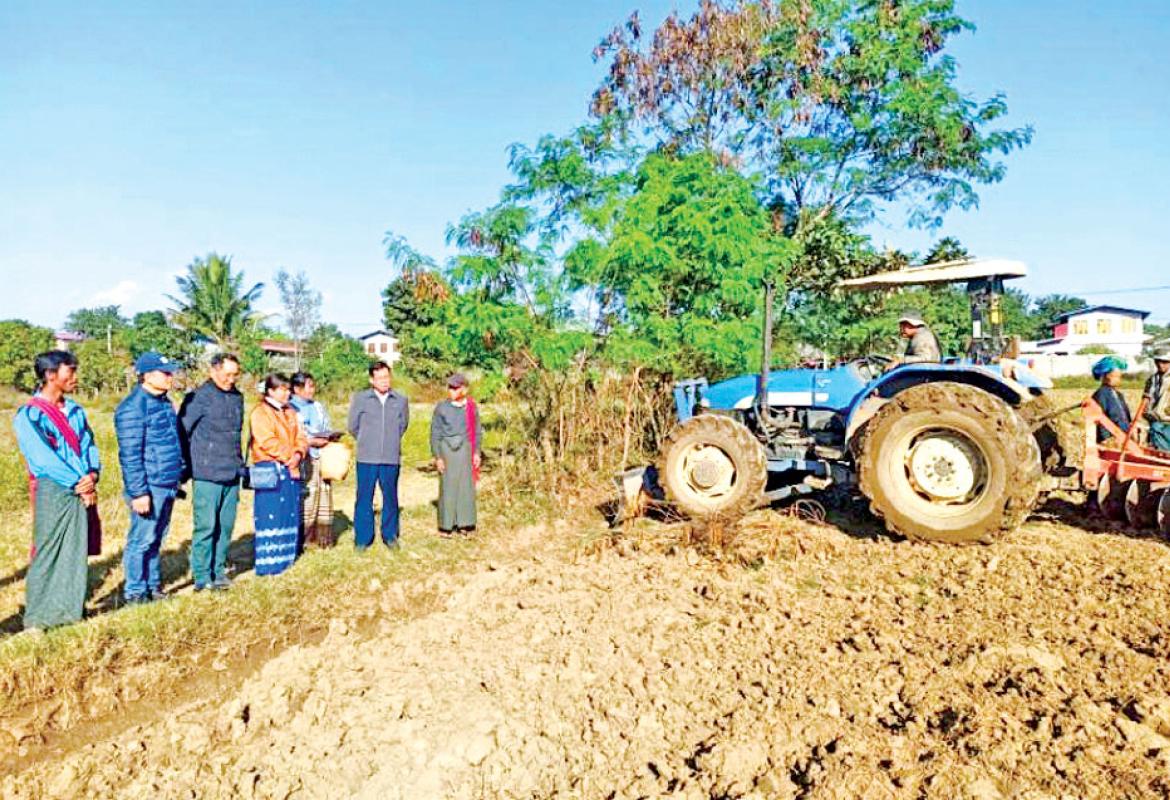 တောင်ကြီးမြို့နယ်၌ ဆောင်းနေကြာသီးနှံစိုက်ပျိုးရန် မြေယာပြုပြင်နေမှုအား တာဝန်ရှိသူများ ကွင်းဆင်းကြည့်ရှု