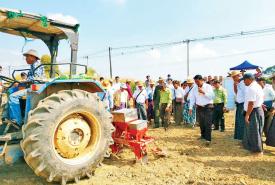 ဒလမြို့နယ်၌ ဆီထွက်သီးနှံ (နေကြာ) မျိုးစေ့ချစက်ဖြင့် စိုက်ပျိုးခြင်းနှင့် ပိုက်ဆံလျှော်ကြဲပက်ခြင်း ကွင်းသရုပ်ပြပွဲကျင်းပ