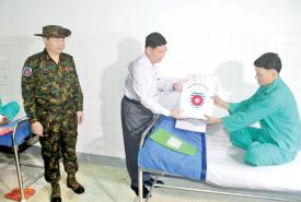 ကျန်းမာရေးစောင့်ရှောက်မှုခံယူနေကြသော တပ်မတော်သားများနှင့်မိသားစုဝင်များ၊ ပြည်သူများအား စားသောက်ဖွယ်ရာများပေးအပ်ချီးမြှင့်
