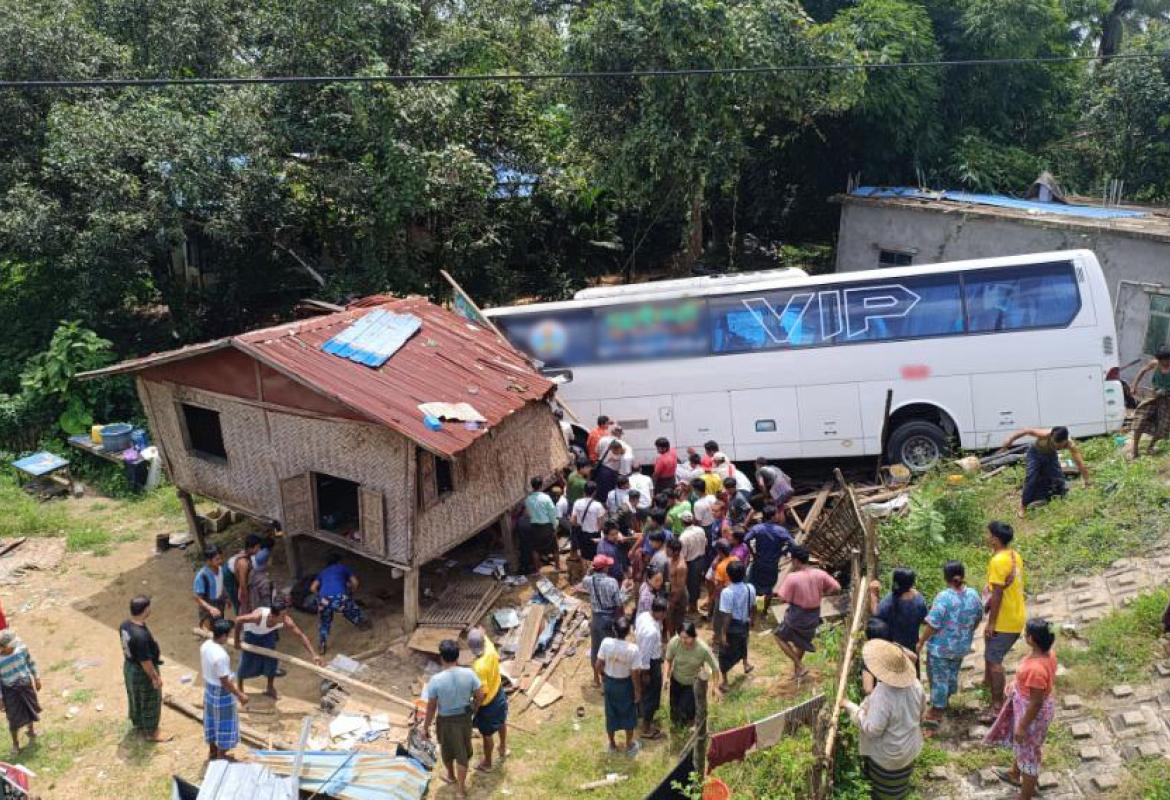 ခရီးသည်ယာဉ်တစ်စီး ဘရိတ်ပေါက်ပြီး လမ်းဘေးထိုးကျ၊ ၂ ဦးသေဆုံးပြီး ၁၂ ဦးဒဏ်ရာရရှိ