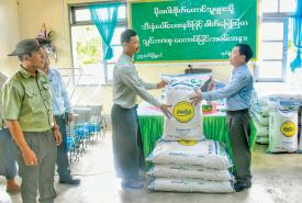 မိုးစပါးစိုက်တောင်သူများသို့ သီးနှံပေါ်ပေးစနစ်ဖြင့် ဓာတ်မြေဩဇာ သွင်းအားစုပေးအပ်