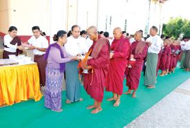 မုံရွာမြို့ပေါ်ရှိ ဘုန်းတော်ကြီးကျောင်းတိုက်များသို့ လှူဖွယ်ဝတ္ထုပစ္စည်းများနှင့် ဆွမ်းဆန်၊ ဆီ၊ ဆား၊ ပဲ အမယ်လေးမျိုးဆက်ကပ်လှူဒါန်း