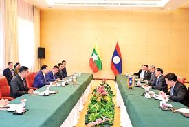 ပြည်ထောင်စုသမ္မတမြန်မာနိုင်ငံတော် ယာယီသမ္မတ နိုင်ငံတော်လုံခြုံရေးနှင့် အေးချမ်းသာယာရေးကော်မရှင်ဥက္ကဋ္ဌ ဗိုလ်ချုပ်မှူးကြီး မင်းအောင်လှိုင် လာအိုပြည်သူ့ဒီမိုကရက်တစ်သမ္မတနိုင်ငံ သမ္မတ H.E. Mr. Thongloun Sisoulith နှင့် တွေ့ဆုံဆွေးနွေး