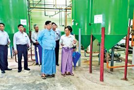 ပြည်ထောင်စုဝန်ကြီး ဒေါက်တာချာလီသန်း ပဲပုပ်ဆီထုတ်လုပ်သည့်စက်ရုံအား ကြည့်ရှုစစ်ဆေး