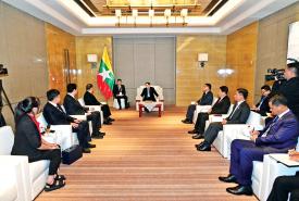 ပြည်ထောင်စုသမ္မတမြန်မာနိုင်ငံတော် ယာယီသမ္မတ နိုင်ငံတော်လုံခြုံရေးနှင့် အေးချမ်းသာယာရေးကော်မရှင်ဥက္ကဋ္ဌ ဗိုလ်ချုပ်မှူးကြီး မင်းအောင်လှိုင် တရုတ်ပြည်သူ့သမ္မတနိုင်ငံ ဝူဟန်တက္ကသိုလ်မှ ဒုတိယအဓိပတိနှင့် တွေ့ဆုံဆွေးနွေး