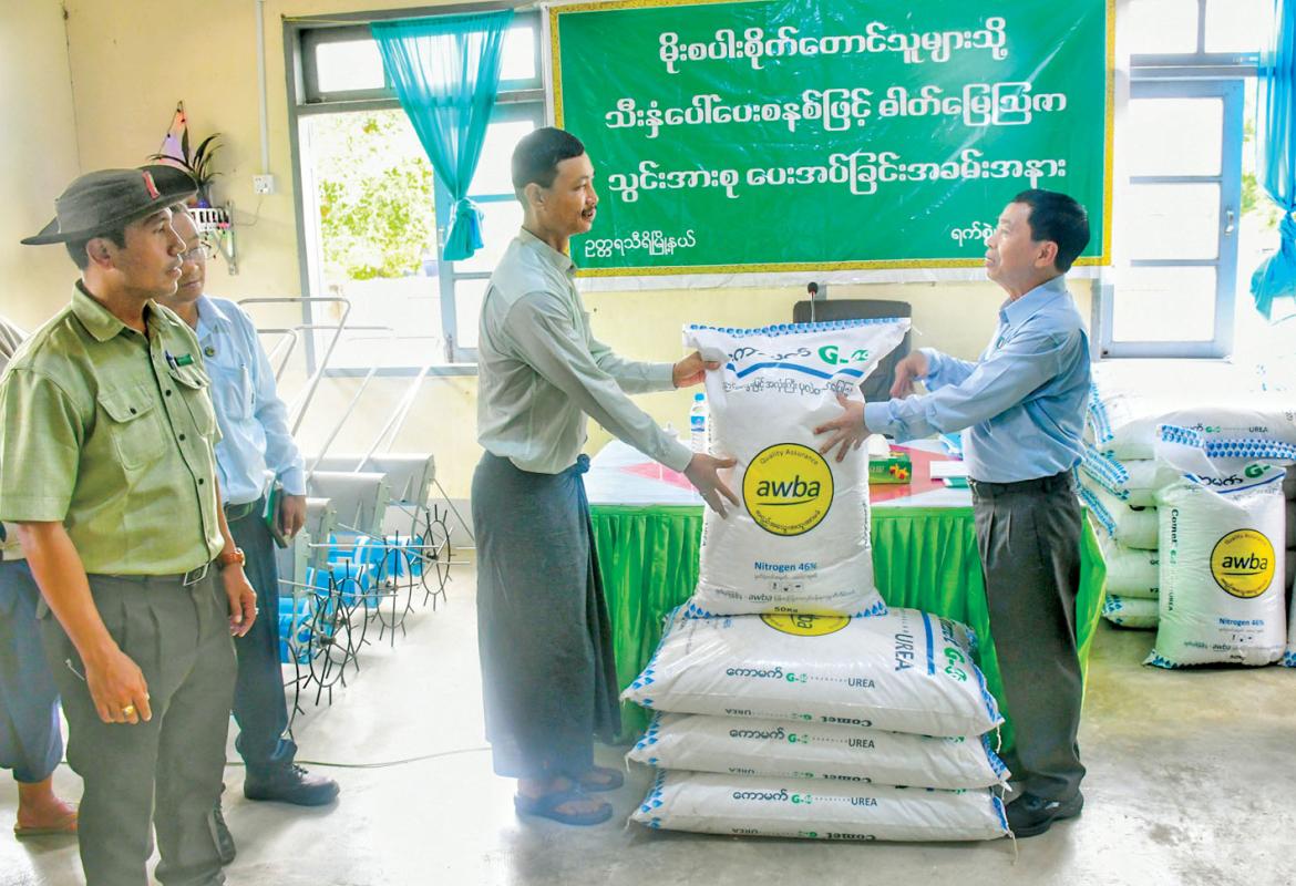 မိုးစပါးစိုက်တောင်သူများသို့ သီးနှံပေါ်ပေးစနစ်ဖြင့် ဓာတ်မြေဩဇာ သွင်းအားစုပေးအပ်