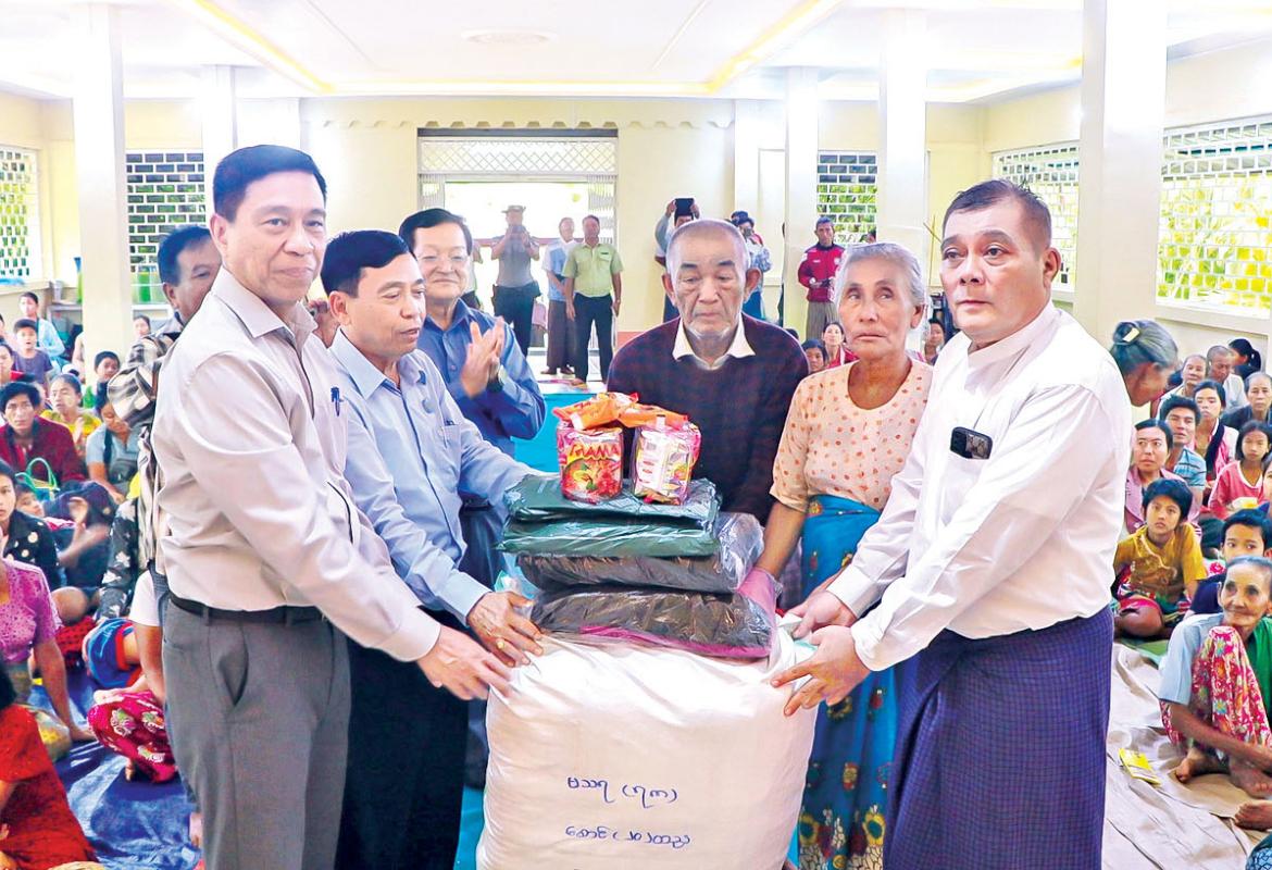 ပြည်ထောင်စုဝန်ကြီး ဒေါက်တာစိုးဝင်းနှင့် နေပြည်တော်ကောင်စီဥက္ကဋ္ဌ ဦးသန်းထွန်းဦး နေပြည်တော်ကောင်စီနယ်မြေအတွင်းရှိ ရေဘေးရှောင်ပြည်သူများအား တွေ့ဆုံအားပေးထောက်ပံ့