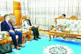 ပြည်ထောင်စုဝန်ကြီး ဦးသန်းဆွေ အိန္ဒိယသံအမတ်ကြီး မစ္စတာ အဘ်ဟေး တာကူးရ်အား လက်ခံတွေ့ဆုံ