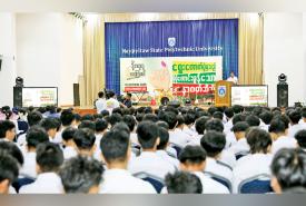 Naypyitaw State Academy နှင့် Naypyitaw State Polytechnic University တို့တွင် “ဒို့အတူမဲပေးကြမယ်” အသိပညာပေး ပြည်သူလူထုလှုံ့ဆော်ရေး Campaign များ ဆောင်ရွက်