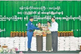 ရန်ကုန်တိုင်းဒေသကြီး အလုံခရိုင်အတွင်းရှိပြည်သူ့လုံခြုံရေးနှင့် အကြမ်းဖက်နှိမ်နင်းရေး အဖွဲ့ဝင်များသို့ ဆန်နှင့်ဆီ ပေးအပ်ပွဲအခမ်းအနားကျင်းပ