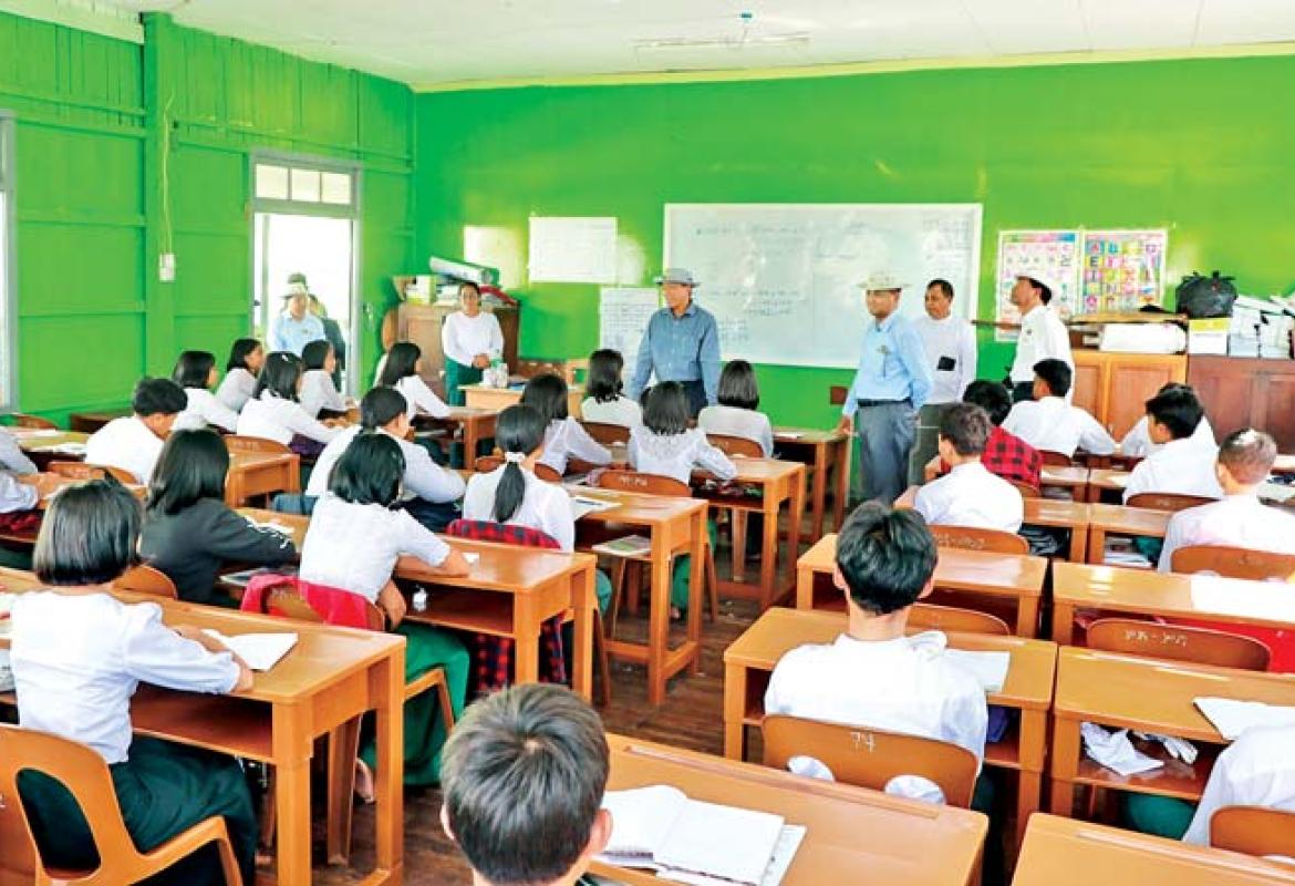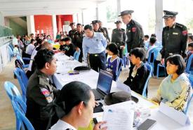 ပြည်ထောင်စုဝန်ကြီး ဦးမြင့်ကြိုင် ပြင်ဦးလွင်မြို့နယ် ဦးစီးမှူးရုံး၌ အိမ်ထောင်စုလူဦးရေစာရင်းနှင့် နိုင်ငံသားစိစစ်ရေးကတ်ပြားထုတ်ပေးခြင်းလုပ်ငန်းများ ဆောင်ရွက်နေမှုကြည့်ရှုအားပေး