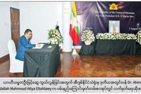 ပြည်ထောင်စုသမ္မတမြန်မာနိုင်ငံတော်၊ ယာယီသမ္မတဦးမြင့်ဆွေ ကွယ်လွန်ခြင်းအတွက် ဝမ်းနည်းကြောင်းမှတ်တမ်းစာအုပ်တွင် ရန်ကုန်မြို့အခြေစိုက်သံရုံးများမှ သံအမတ်ကြီးများနှင့် သံရုံးအကြီးအကဲများ လက်မှတ်ရေးထိုး