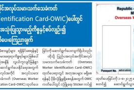 ပြည်ပအလုပ်အကိုင်အလုပ်သမားသက်သေခံကတ် (Overseas Worker Identification Card-OWIC)ပေါ်တွင် လုံခြုံရေး Sticker အသုံးပြုသွားမည့်ကိစ္စနှင့်စပ်လျဉ်း၍ အသိပေးကြေညာချက်