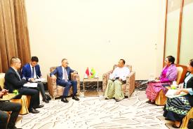 ပြည်ထောင်စုဝန်ကြီး ဒေါက်တာကံဇော် တရုတ်နိုင်ငံတကာဖွံ့ဖြိုးမှု ပူးပေါင်းဆောင်ရွက်ရေး အေဂျင်စီ ဥက္ကဋ္ဌ ဦးဆောင်သော ကိုယ်စားလှယ်အဖွဲ့အား လက်ခံတွေ့ဆုံ