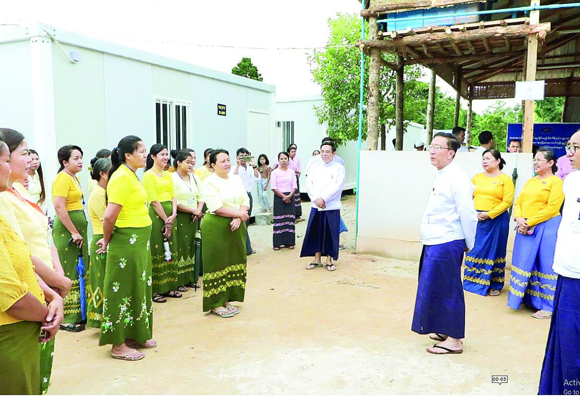 ဒုတိယဝန်ကြီးချုပ်နှင့် ပြည်ထောင်စုဝန်ကြီး ဦးဝင်းရှိန် Modular House များတွင် နေထိုင်ကြသည့် ဝန်ထမ်းများအား တွေ့ဆုံအားပေး