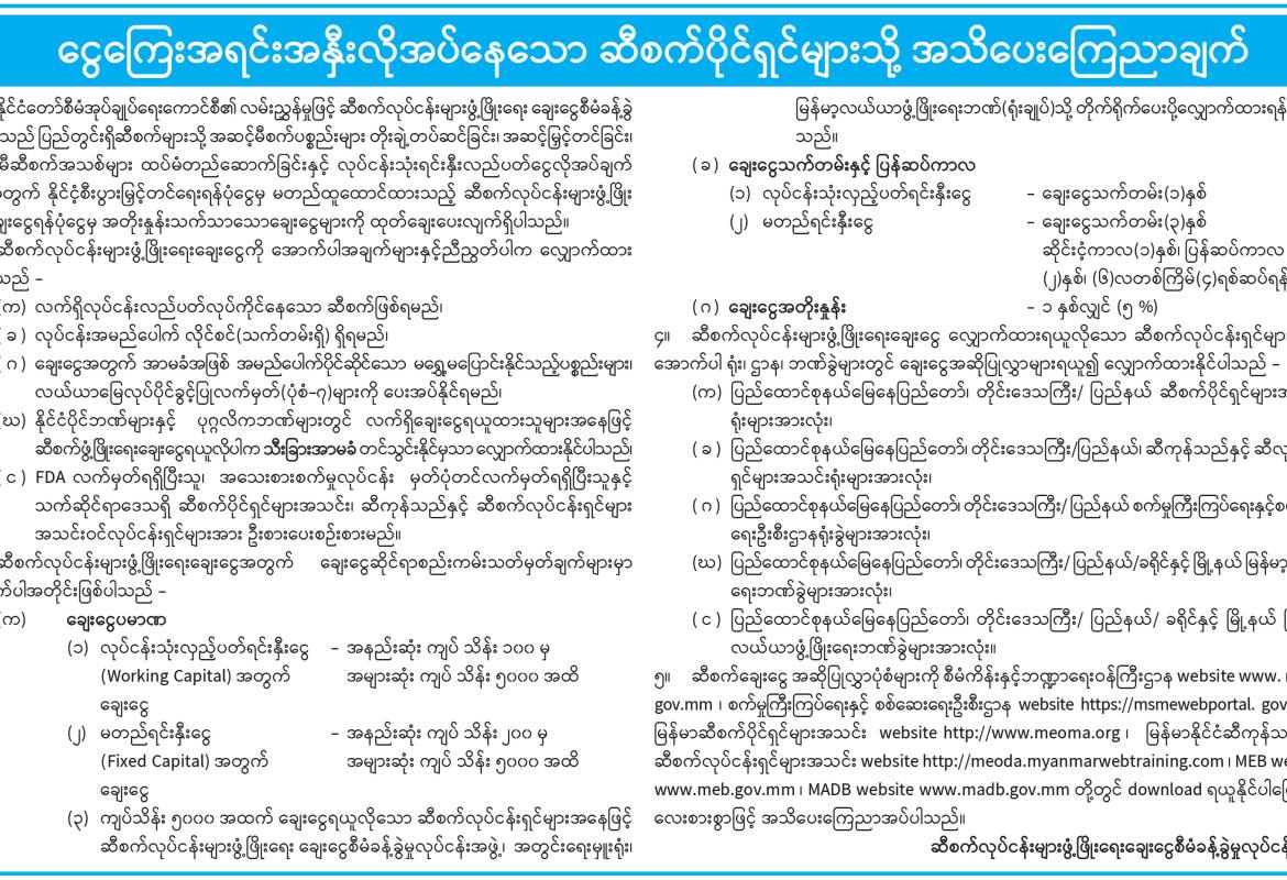 ငွေကြေးအရင်းအနှီးလိုအပ်နေသော ဆီစက်ပိုင်ရှင်များသို့ အသိပေးကြေညာချက်