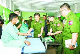 နိုင်ငံတော်စီမံအုပ်ချုပ်ရေးကောင်စီဥက္ကဋ္ဌ တပ်မတော်ကာကွယ်ရေးဦးစီးချုပ် ဗိုလ်ချုပ်မှူးကြီး မင်းအောင်လှိုင် မိတ္ထီလာမြို့ရှိ တပ်မတော်ဆေးရုံ၌ တက်ရောက်ကုသမှုခံယူလျက်ရှိသည့် အရာရှိ၊ စစ်သည်များ၏ ကျန်းမာရေးအခြေအနေများအား သွားရောက်ကြည့်ရှု