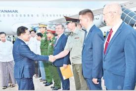 နိုင်ငံတော်စီမံအုပ်ချုပ်ရေးကောင်စီဥက္ကဋ္ဌ နိုင်ငံတော်ဝန်ကြီးချုပ် ဗိုလ်ချုပ်မှူးကြီး မင်းအောင်လှိုင် ဦးဆောင်သည့် မြန်မာအဆင့်မြင့်ကိုယ်စားလှယ်အဖွဲ့ မြန်မာနိုင်ငံသို့ ပြန်လည်ရောက်ရှိ