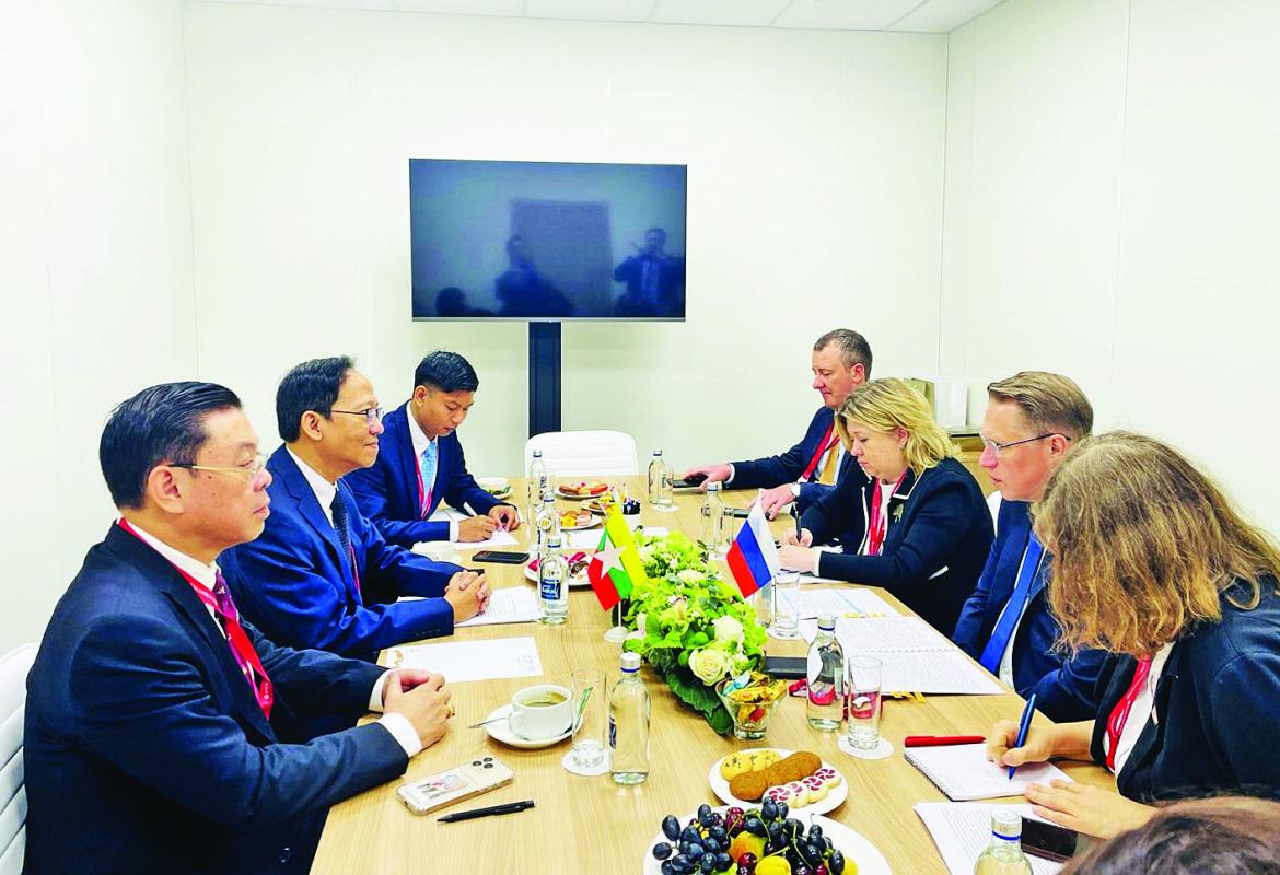 ပြည်ထောင်စုဝန်ကြီး ဗိုလ်ချုပ်ကြီးမြထွန်းဦး ခေါင်းဆောင်သော မြန်မာကိုယ်စားလှယ်အဖွဲ့ (၂၈) ကြိမ်မြောက် စိန့်ပီတာစဘတ်နိုင်ငံတကာစီးပွားရေးဖိုရမ်သို့ တက်ရောက်ပြီး ပြန်လည်ရောက်ရှိ