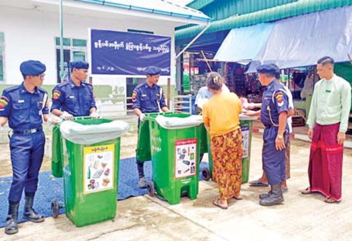လှိုင်းဘွဲမြို့ မြို့မစျေး၌ စွန့်ပစ်အမှိုက်ခွဲခြားစွန့်ပစ်မှု သရုပ်ပြပွဲဆောင်ရွက်