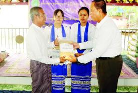ပြည်ထောင်စုဝန်ကြီး ဦးလှမိုး လယ်ဝေးမြို့နယ်အတွင်းရှိ ကျေးရွာ ၁၁ ရွာမှ စိုက်ပျိုးရေးသမဝါယမအသင်း ၁၁ သင်းအတွက် အထွက်တိုးမျိုးစပါးနှင့် သွင်းအားစုများ ပေးအပ်