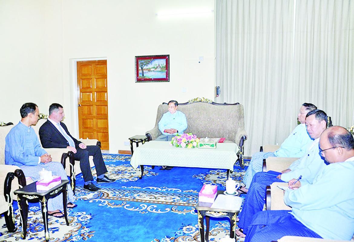 ပြည်ထောင်စုဝန်ကြီး ဒေါက်တာချာလီသန်း ရုရှားဖက်ဒရေးရှင်းနိုင်ငံ Tyazhpromexport Co., Ltd. (TPE) မှ Chief Engineer Mr. Akeksandr Senin အား လက်ခံတွေ့ဆုံ
