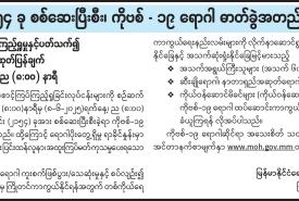 ဓာတ်ခွဲနမူနာစုစုပေါင်း ၂၁၅၄ ခု စစ်ဆေးပြီးစီး၊ ကိုဗစ်-၁၉ ရောဂါ ဓာတ်ခွဲအတည်ပြုလူနာသစ် ၃၁ ဦးတွေ့ရှိ