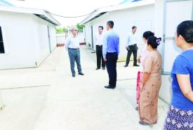 ပြည်ထောင်စုဝန်ကြီး ဦးလှမိုး ယာယီဘာရှာလိုင်းခန်းများ၌ ဝန်ထမ်းများ ပြောင်းရွှေ့နေထိုင်နေမှုနှင့် Prefabricated Modular House များ တပ်ဆင်ဆောင်ရွက်နေမှု ကြည့်ရှုစစ်ဆေး