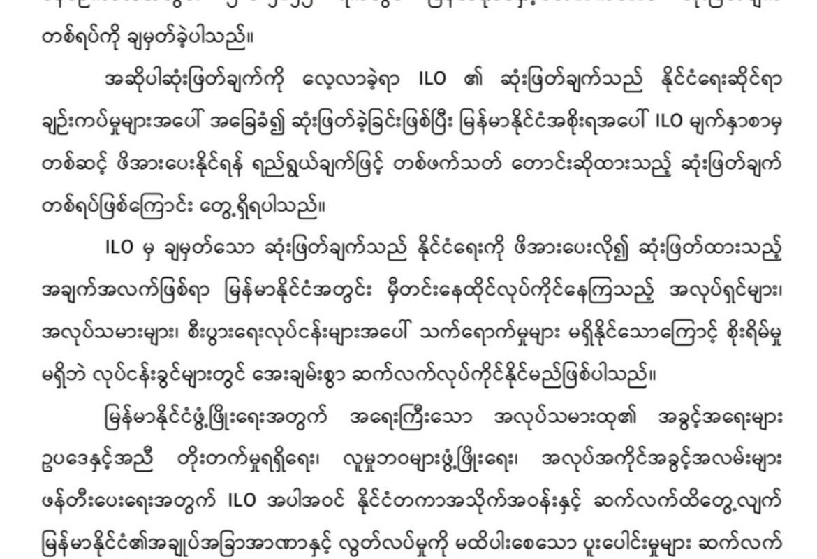 မြန်မာနိုင်ငံအပေါ် ချမှတ်ခဲ့သော အိုင်အယ်လ်အို(ILO) ဆုံးဖြတ်ချက်နှင့်စပ်လျဉ်း၍ အသိပေးချက်