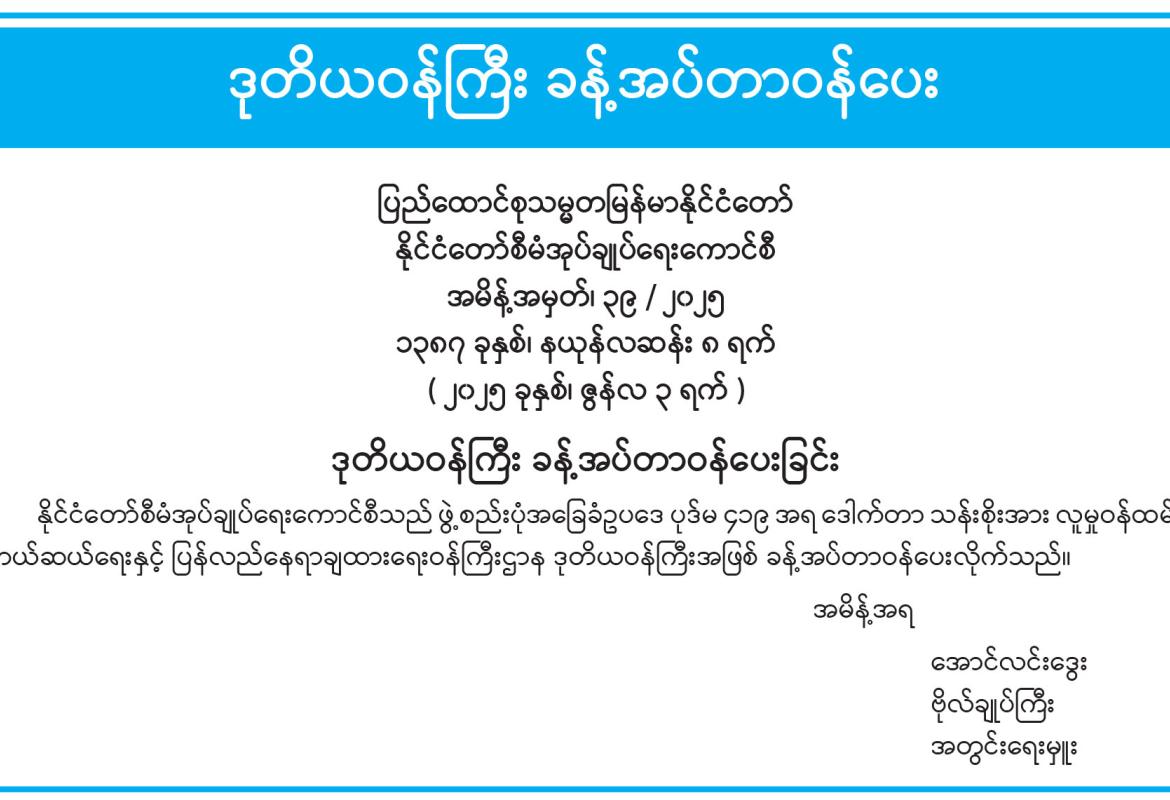 ဒုတိယဝန်ကြီး ခန့်အပ်တာဝန်ပေး