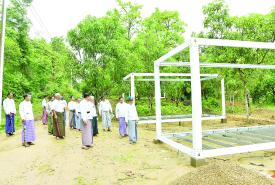 ပြည်ထောင်စုဝန်ကြီး ဦးမြင့်ကြိုင် ငလျင်ဒဏ်ခံရသည့် နေပြည်တော်ရှိ ဝန်ကြီးဌာနမှဝန်ထမ်းများ ယာယီနေရာချထားမှုနှင့် Container House များ တပ်ဆင်ဆောင်ရွက်နေမှု လှည့်လည်ကြည့်ရှု၍ ထောက်ပံ့ပစ္စည်းများပေးအပ်