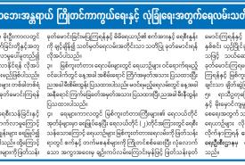 မိုးဦးကာ ရေယာဉ်များ သဘာဝဘေးအန္တရာယ် ကြိုတင်ကာကွယ်ရေးနှင့် လုံခြုံရေးအတွက်ရေလမ်းသတိပေးနှိုးဆော်ချက် ထုတ်ပြန်ခြင်း