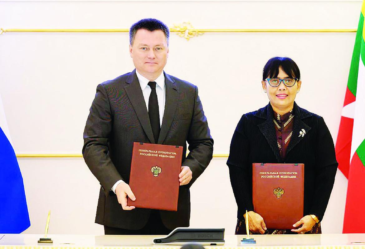 ပြည်ထောင်စုဝန်ကြီးနှင့် ပြည်ထောင်စုရှေ့နေချုပ် ဦးဆောင်သောအဖွဲ့ နိုင်ငံသားများအား အပြည်ပြည်ဆိုင်ရာ တရားစီရင်ရေးအလွဲသုံးစားပြုလုပ်၍ တရားစီရင်ခြင်းမှအပြန်အလှန် အကာအကွယ်ပေးရေးဆိုင်ရာ သဘောတူစာချုပ်နှင့် လုပ်ထုံးလုပ်နည်းဆိုင်ရာစာချုပ် လက်မှတ်ရေးထိုးပွဲ တက်ရောက်