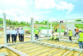 ပြည်ထောင်စုဝန်ကြီး ဦးဉာဏ်ထွန်း ငလျင်ဘေးသင့်ဝန်ထမ်းများနှင့်ဝန်ထမ်းမိသားစုများ ယာယီပြောင်းရွှေ့ နေထိုင်နိုင်ရန်အတွက် Container House များ တပ်ဆင်တည်ဆောက်နေမှု ကြည့်ရှုစစ်ဆေး