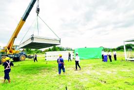 နိုင်ငံတော်စီမံအုပ်ချုပ်ရေးကောင်စီအဖွဲ့ဝင် ဒုတိယဝန်ကြီးချုပ်နှင့် ပြည်ထောင်စုဝန်ကြီး ဗိုလ်ချုပ်ကြီး မြထွန်းဦး နေပြည်တော်ကောင်စီနယ်မြေအတွင်း ဝန်ကြီးဌာနအောက်ရှိ ဌာနပိုင်မြေနေရာများ၌ ငလျင်ဘေးသင့် ဝန်ထမ်းမိသားစုများနေထိုင်မည့် Modular House များ တည်ဆောက်နေမှု