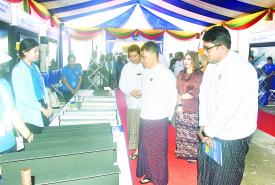 ပြည်ထောင်စုဝန်ကြီး ဦးထွန်းအုံ သံ၊ သံမဏိ၊ ဘိလပ်မြေနှင့် ဆောက်လုပ်ရေးလုပ်ငန်းသုံးပစ္စည်းများ ရောင်းချခြင်း လိုက်လံကြည့်ရှုအားပေး