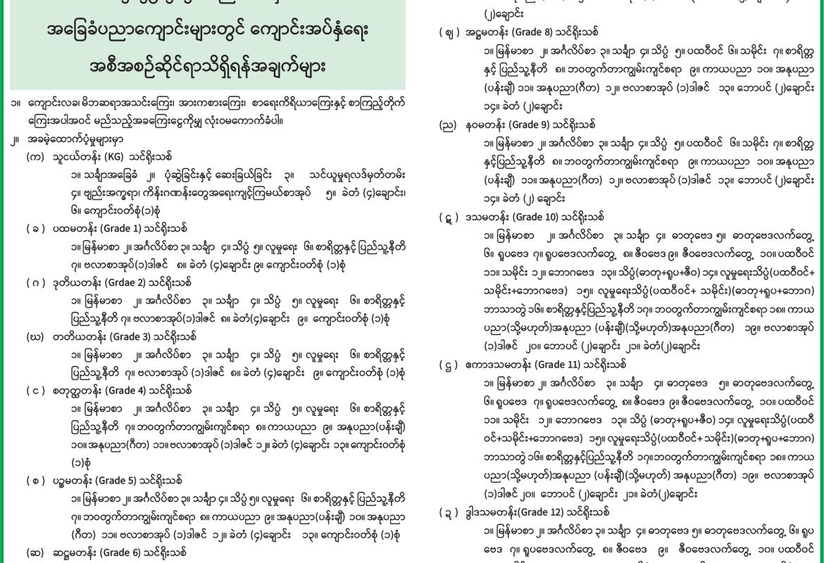 "၂၀၂၅-၂၀၂၆ ပညာသင်နှစ်" အခြေခံပညာကျောင်းများတွင် ကျောင်းအပ်နှံရေး အစီအစဉ်ဆိုင်ရာသိရှိရန်အချက်များ