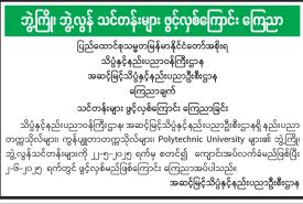 ဘွဲ့ကြို၊ ဘွဲ့လွန် သင်တန်းများ ဖွင့်လှစ်ကြောင်း ကြေညာ