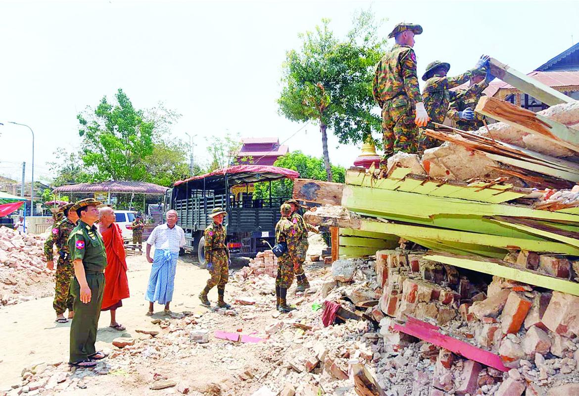 ငလျင်ဒဏ်ကြောင့် ပျက်စီးဆုံးရှုံးမှုများ ဖြစ်ပေါ်ခဲ့သည့်ဒေသများ၌ ကူညီကယ်ဆယ်ရေးလုပ်ငန်းများ အင်တိုက်အားတိုက် ဆက်လက်ဆောင်ရွက်လျက်ရှိ