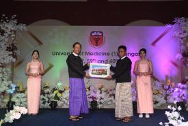 ပြည်ထောင်စုဝန်ကြီး ပါမောက္ခဒေါက်တာသက်ခိုင်ဝင်း ဆေးတက္ကသိုလ် (၁) ရန်ကုန်၏ (၅၈) ကြိမ်၊ (၅၉) ကြိမ်နှင့် အကြိမ် (၆၀) မြောက် ဘွဲ့နှင်းသဘင်ဂုဏ်ပြုညစာစားပွဲသို့တက်ရောက်